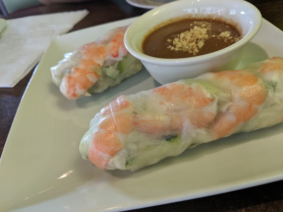 I ordered the banh mi/Vietnamese sandwich and shrimp spring rolls to go. My car smelled delicious, I wanted to eat it in the parking lot. The bread was very soft and chicken was very flavorful. All the flavors came together great. The spring rolls were yummy too with the peanut dipping sauce.